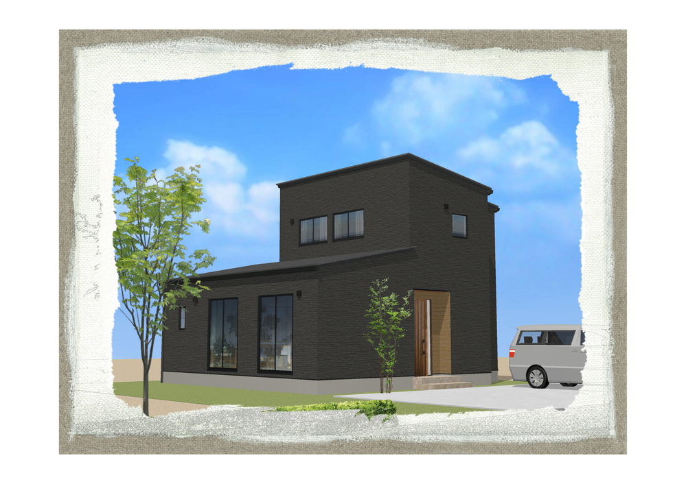 周囲の風景を引き締めるような、マットな黒の素材感に包まれた外観。無駄な装飾を削ぎ落としたスクエアなフォルムは、シンプルでありながら圧倒的な存在感を放ちます。玄関周りに配した木目のアクセントが、クールな表情の中に住まう人を温かく迎え入れる優しさを添え、洗練された「大人のモダン」を体現しています。