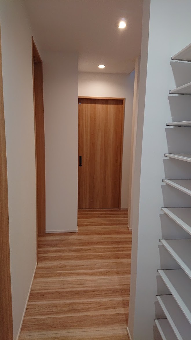 玄関入ってすぐのところに ファミリークローゼットを☆ ランドセル置き場として、学校のプリント置き場として、 大活躍間違いなしですね!
