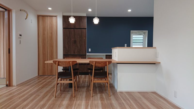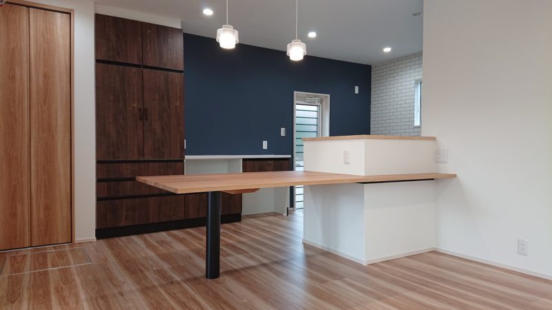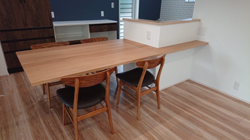 ダイニングには無垢材の造作テーブル♪ LDKの隣には4.5帖の和室 2階、吹き抜け部分にはカウンターを☆